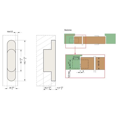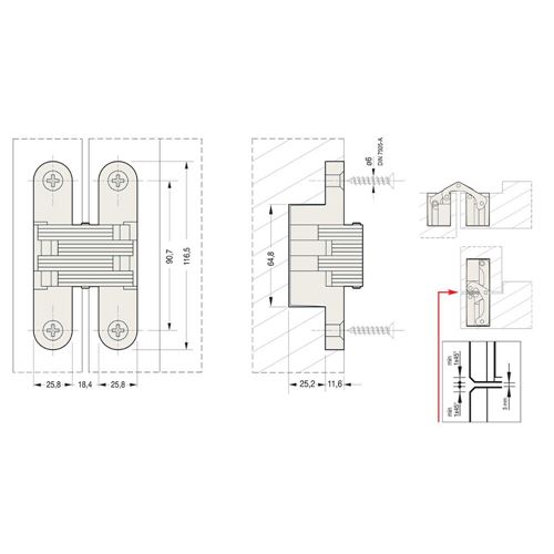 Cerniere invisibili acciaio zama mm. 116,5x25,8