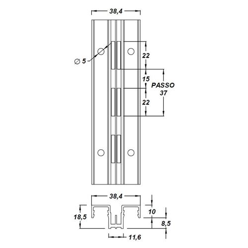 Complete di fori di fissaggio a parete diametro 5 mm.