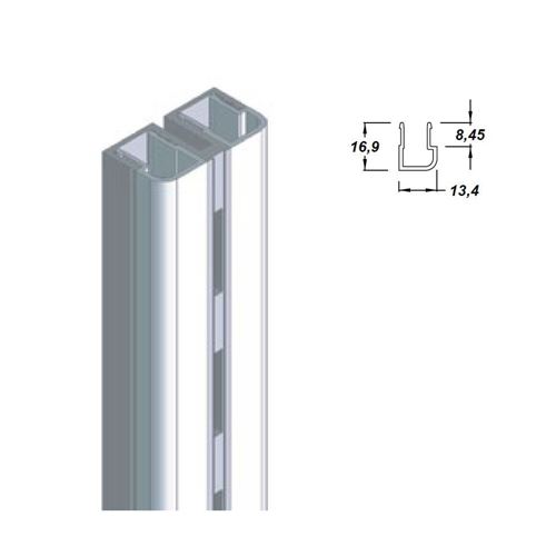Profilo di copertura per cremagliere K8 centrali e laterali.Realizzato in alluminio profilato.Fissaggio a scatto.Permette di realizzare pareti attrezzate senza pannelli di rivestimento.