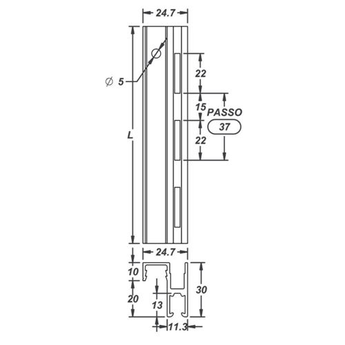 Cremagliera laterale destra con feritoia singola.Da utilizzare all'estremità destra non elettrificata del pannello.Completa di fori di fissaggio a parete diametro 5 mm.Realizzata in alluminio anodizzato argento.