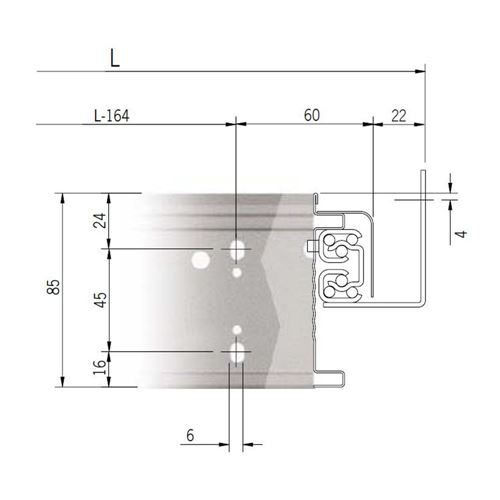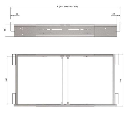 Le guide ad estrazione totale prevedono una squadretta allargata per evitarente interferenza del telaio con le ante aperte.