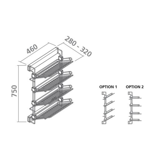 Portascarpe estraibile laterale sinisttro realizzato in filo metallico