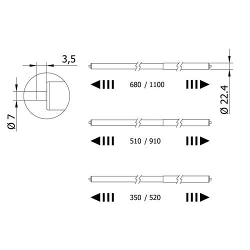 Tubi estensibili tondi Sospensione alla spalla con spina diametro mm. 7 Finitura nichelataPortata fino a 10 Kg.