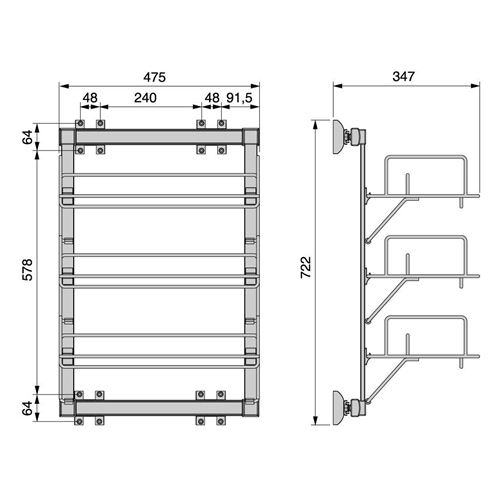 Portascarpe realizzato in filo metrallico con telaio estraibileAltezza mm. 722Profondità mm. 475Larghezza mm. 374Finitura verniciata silverScorrimento su guide a sfere in acciaioMontaggio reversibile destri/sinistro