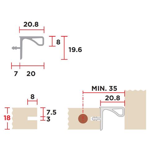 Profilo gola per pensili realizzato in alluminio profilato