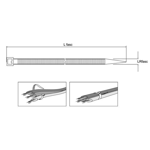 Fascette in nylon PA 66 per cablaggio Temperatura di posa: -10/+60°c Temperatura di esercizio: -40/+85°c Autoestinguenti a norma UL94 classe V2