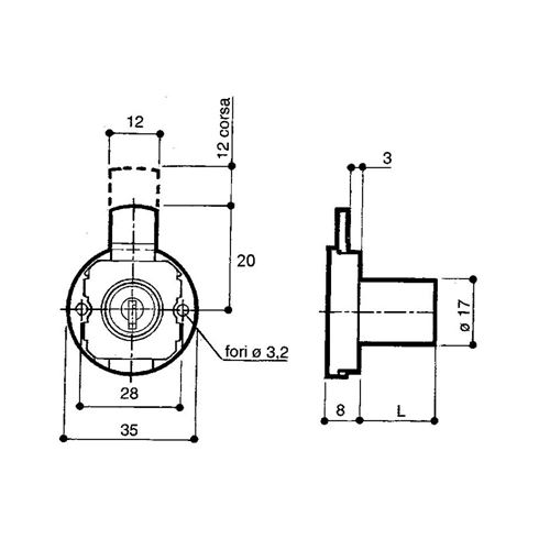 Rotazione chiave 180° con doppia uscita (aperto/chiuso).