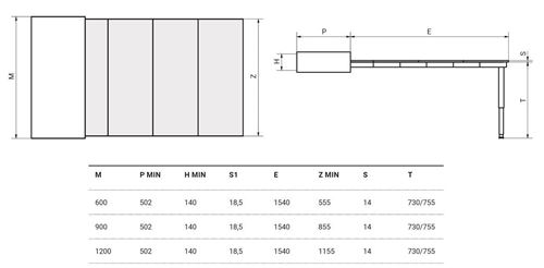 Profondità minima mm. 502
