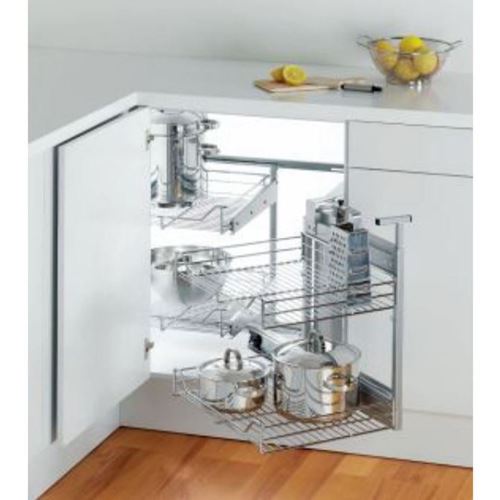 La prima parte del cestello si estrae a mano dopo aver aperto l’antina e, spostandosi trasversalmente, permette lo scorrimento laterale dei due cestelli interni montati su guide che si posizionano davanti all'apertura del vano e possono essere estratti in modo indipendente tra di loro.