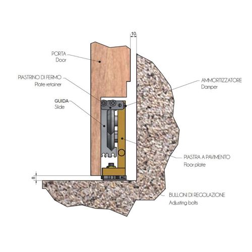 Guarnitura scorrevole invisibile per porta Ghost con fissaggio a
