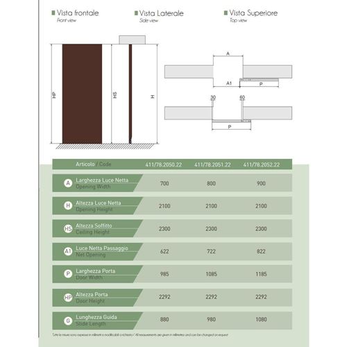 Lunghezza binario mm. 1300 (idoneo per luce di passaggio mm.1120 con