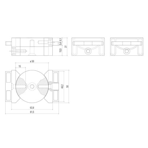 Giunto snodato orizzontale per corrimani Alusko 50x27Permette di realizzare raccordi ad angolo complanare tra duespezzoni di corrimano.Realizzato in alluminio anodizzato con finitura inox look.