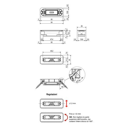 Regolazione +/- 1,5 mm.