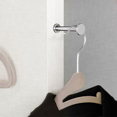 Appendiabiti estraibile per l'interno dell'armadio,usato per appendere grucce ed essere nascosto dopo l'uso.Grazie alle sue piccole dimensioni può essere installato neldivisorio verticale dell'armadio.Finitura cromo lucido.