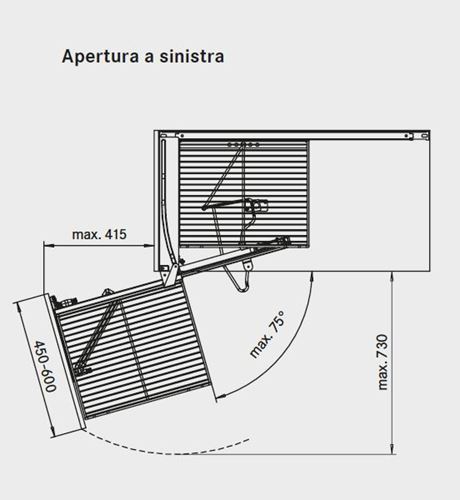 La prima parte del cestello si estrae tirando l'antina e, spostandosi trasversalmente, permette lo scorrimento laterale dei due cestelli interni montati su guide che si posizionano davanti all'apertura del vano.