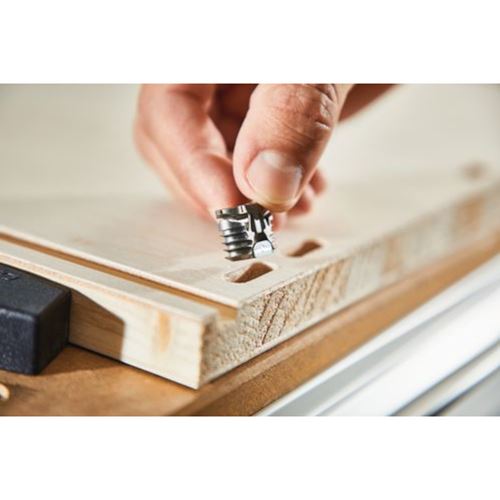 - la giunzione DOMINO / DOMINO KV D8/50 viene posizionata sia sul fianco dell'armadio che nel piano della struttura con la fresatrice per giunzioni DOMINO DF 500