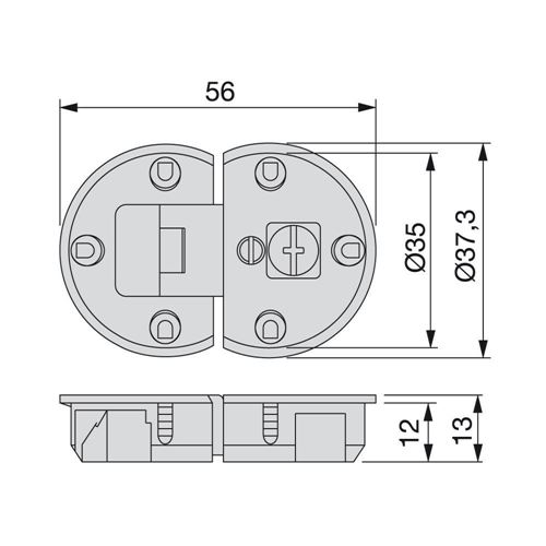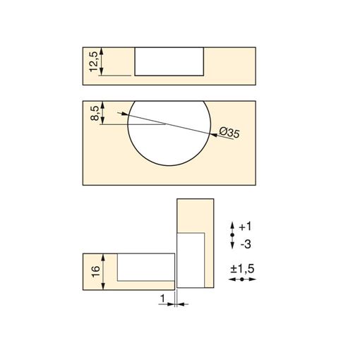 Cerniera per ante a ribalta con doppio scodellino diametro 35 mm.