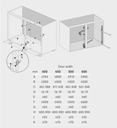 LeMans II con apertura destra per anta larghezza nominale mm. 450