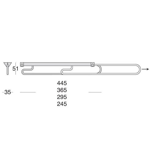 Portaometti estraibili realizzati in acciaio e materiale plasticoAltezza mm. 51 Larghezza mm. 35 Asola portagrucce cromata Supporto di fissaggio e scorrimento verniciata