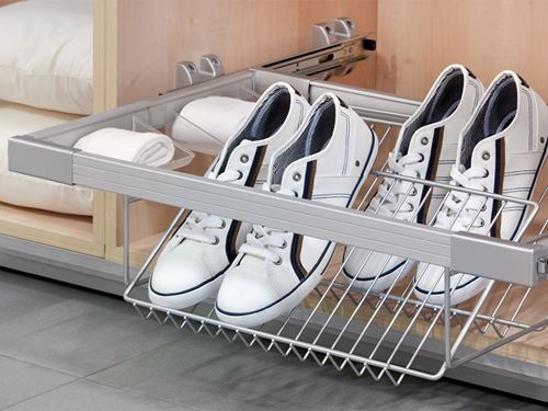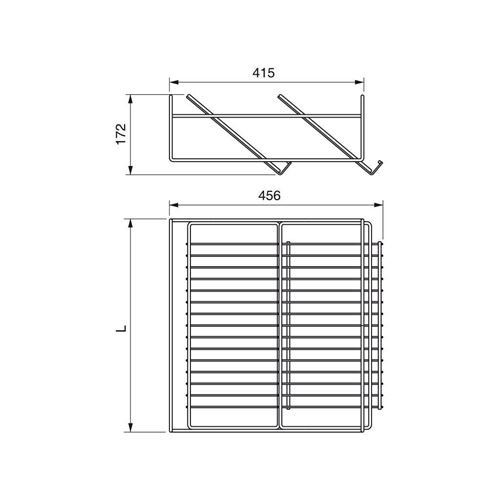 Inserto portascarpe realizzato in filo metallico per telai estraibili KeepPermette di realizzare vassoi portascarpe estraibiliAltezza mm. 172Profondità mm. 456Finitura verniciata silver