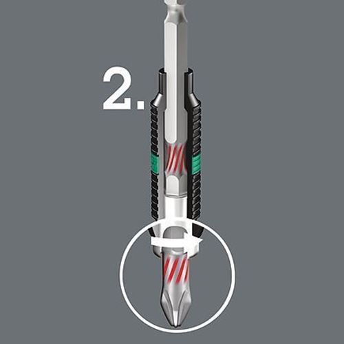 Inserti BiTorsion per viti Pozidrive con zona di torsione elastica che, durante i picchi di carico, assorbe l’energia cinetica.