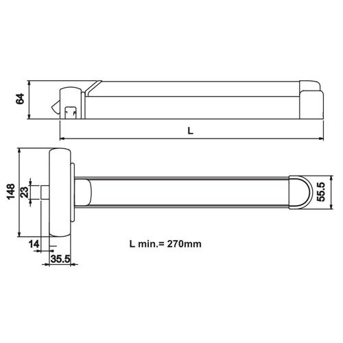 antipanico modulo push l117 3p satin c/barra satin s/aste