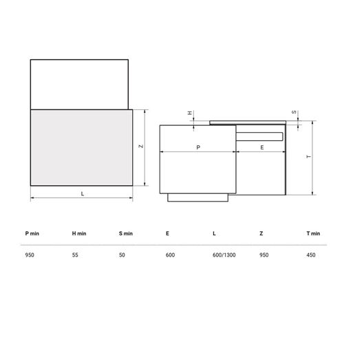 Profondità minima mm. 950