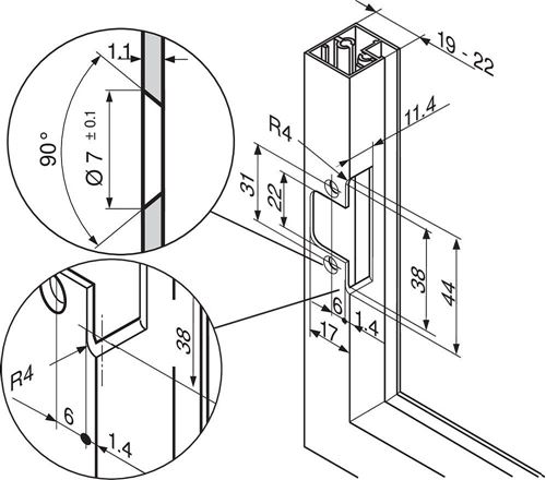 Piastrine per il montaggio di AVentos HF su antine realizzate con telaio in allumnio stretto.