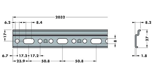 barre portapensili h27 18/10 mt. 2 zinc. h mm. 27 c/antisganciamento