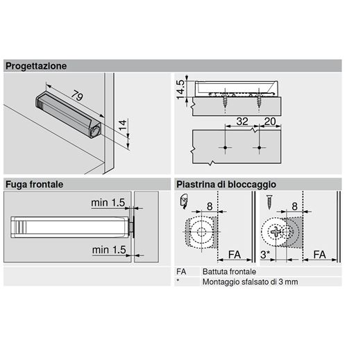 Piastrina di supporto TIP-ON per ante, diritta (20/32 mm)
