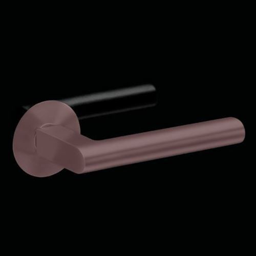 Maniglia con nottolino libero/occupato, rosette Plan-Design,senza molla di richiamo.Dimensione rosetta diam. mm. 55 x 3.Finitura: bronzo antico.