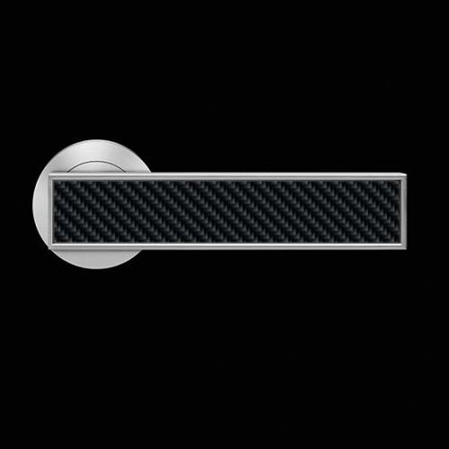 Maniglia con nottolino libero/occupato e molla di richiamo.Inserto in fibra di carbonio.Finitura: nichel satinato.