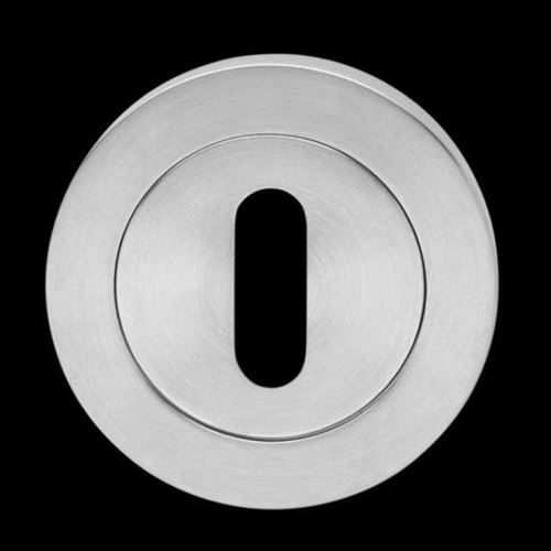 Maniglia con rosetta patent tripartita e molla di richiamo.Inserto in fibra di carbonio.Finitura: nichel satinato.