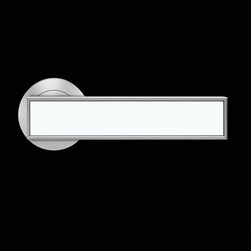 Maniglia con nottolino libero/occupato e molla di richiamo.Inserto sintetico in finitura bianco satinato.Finitura: nichel satinato.