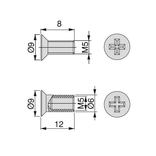viti bathlocker passanti tps m/f inox m: 5max8 - f: 5max12 d.6