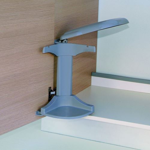 Fissaggio sul fianco della base e gancio di traino sull'anta.