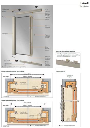 INCASSO: le misure ordinate saranno maggiorate degli ingombri di cassonetto e guide (tolleranza ±1mm).