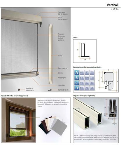 Per le misure di realizzazione con oscurante Condor o filtrante Euroscreen, fare espressa richiesta nelle note.