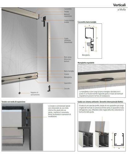 Al minimo ingombro, deve poi essere aggiunta la facilità di montaggio: infatti le sue testate sono dotate di molle che sorreggono il cassonetto quando viene posizionato nella parte alta del foro per infilarci sotto le guide, senza la necessità di fissarlo.