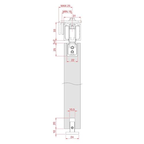 Guarnitura per porte scorrevoli con staffa ad incasso con innesto e