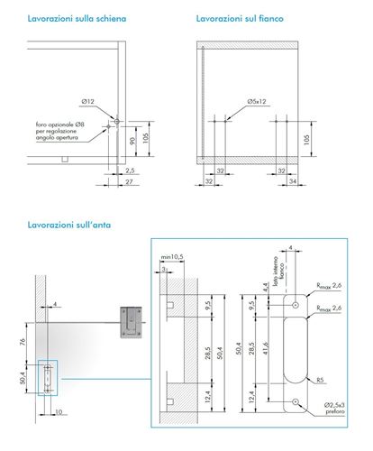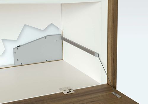 Un unico cricchetto (da ordinare a parte) garantisce, in ogni situazione di peso e dimensione anta, l’apertura senza maniglia.