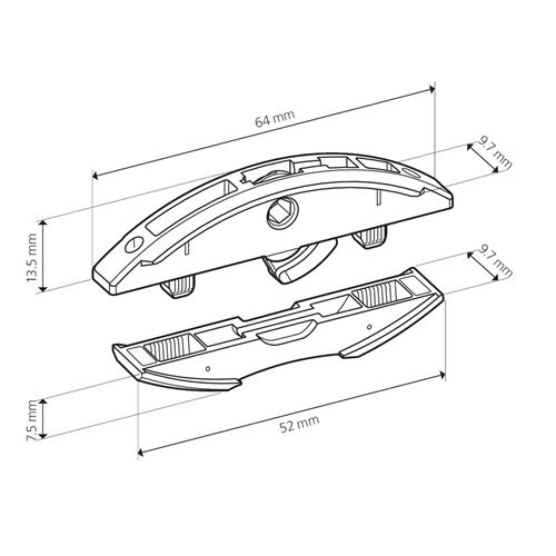 - Grandezza: 64 Î 13.5 Î 9.7 mm / 52 Î 7.5 Î 9.7 mm