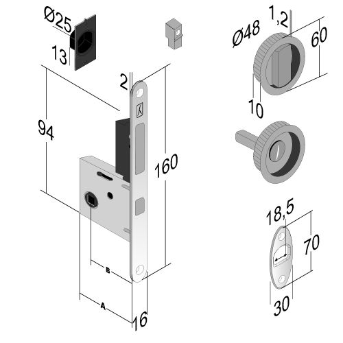 Kit serratura a gancio per porta scorrevole con maniglia di