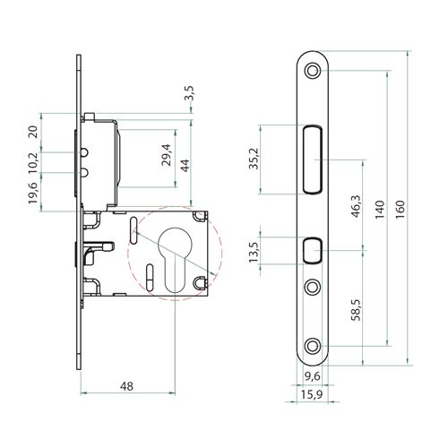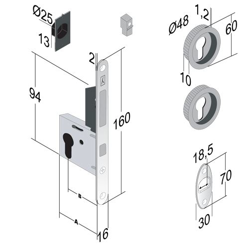 Kit serratura a gancio per porta scorrevole con maniglia di