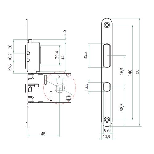 Kit serratura a gancio per porta scorrevole con maniglia di