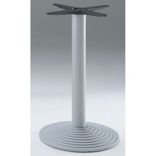 Base tavolo con basamento in ghisa tondo scalettatoTubo in acciaio tondoAltezza totale cm. 73 Fissaggio al piano con supporto a croce in ghisa Finitura verniciata