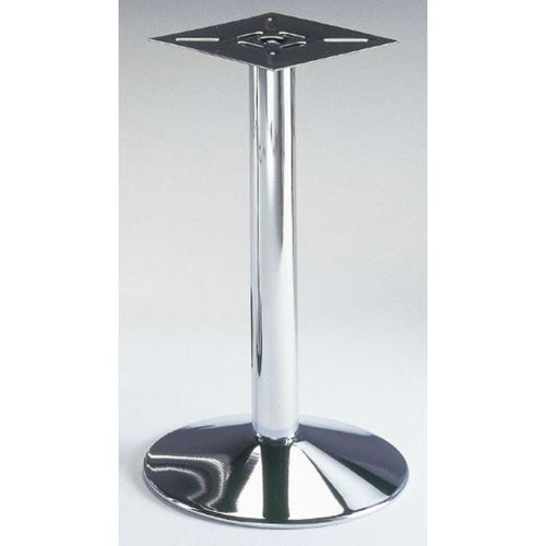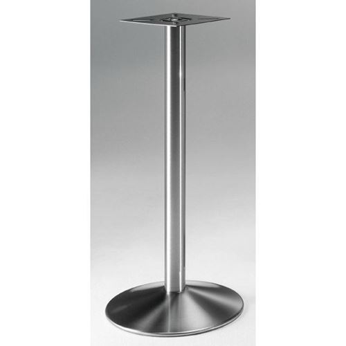 Base tavolo con basamento in acciao tondo conico Tubo in acciaio tondo sezione diametro 80 mm. Altezza totale cm. 73 Zavorra supplementare su richiesta da ordinare a parte Fissaggio al piano con piastra in acciaio stampato 30 x 30 cm