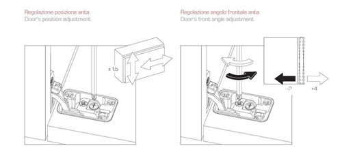È effettuabile la regolazione dell’anta nelle tre dimensioni: orizzontale, verticale e frontale.