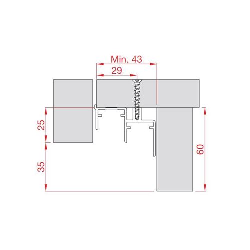 Possibilità di fissaggio dall'interno del mobile con foro vite a mm. 29 dal filo frontale del basamento