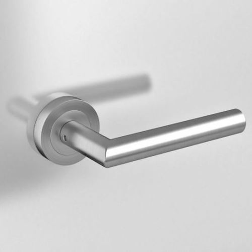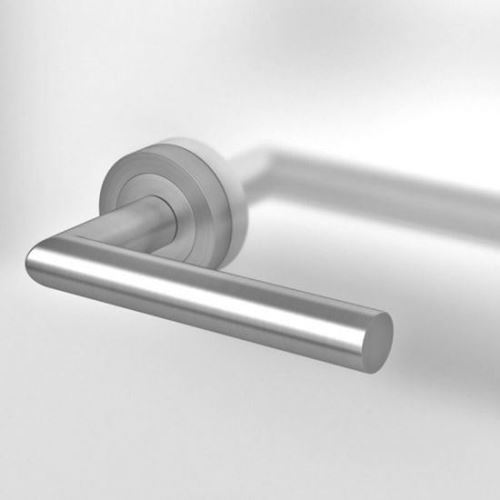Maniglia in acciaio "Rhodos" su rosetta tripartita.